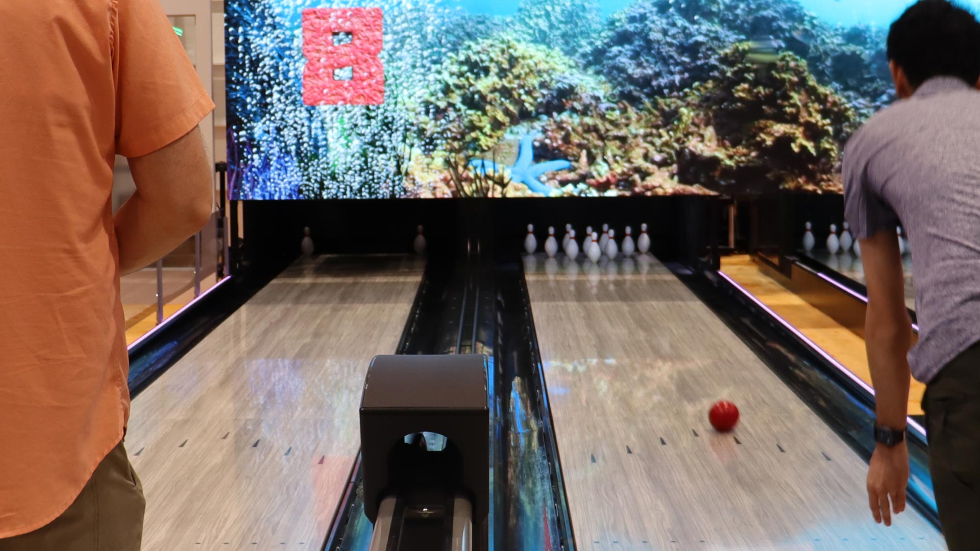 Orange flyn ducks long QubicaAMF duckpin bowling lane lenght.jpeg